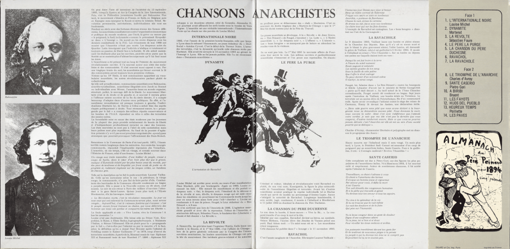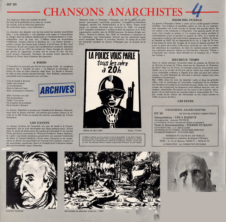 Regardons maintenant autre disque : “chansons anarchistes”.