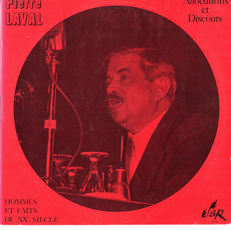 Analysons une pochette afin de faire une série, « Pierre Laval, Allocutions et discours » ; mais commençons par quelques éléments essentiels : si la figure de Pétain, personnage complexe, peut parfois être glorifiée par les milieux d’extrême droite comme « vainqueur de Verdun » et défenseur de la France (cf. thèse de l’épée et du bouclier) celle de Laval est en revanche bien moins discutée, il est souvent vu comme l’artisan n°1 de la collaboration.