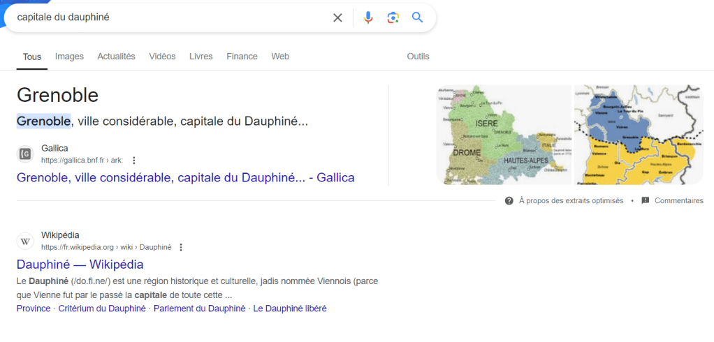 “Capitale du dauphiné”, résultats de recherche Google effectuée le 18 juillet 2024
