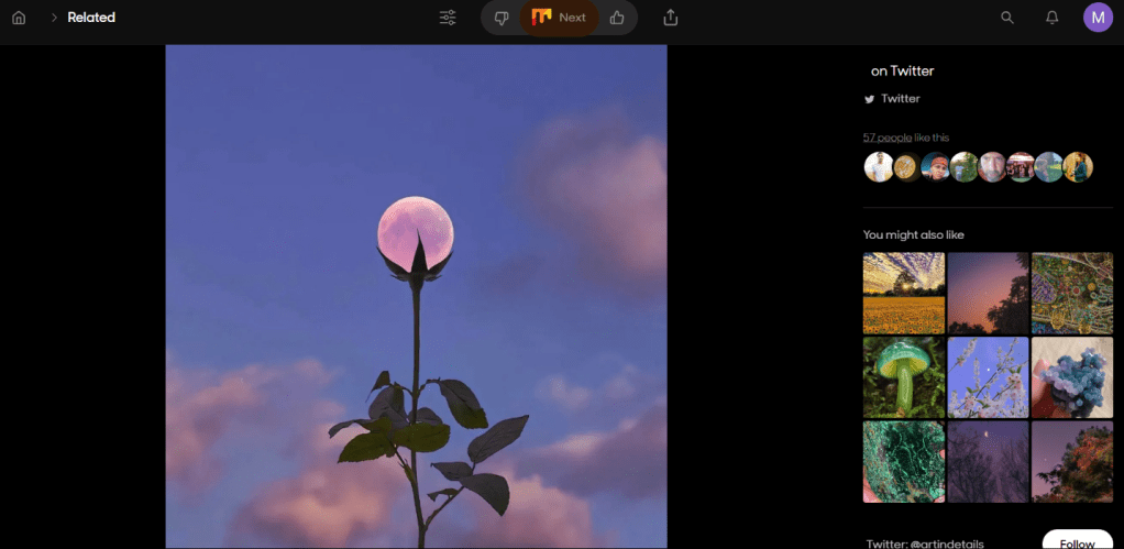 Il nous faut en revanche présenter notre second exemple, le site Mix.com (ex-StumbleUpon). Ce dernier est basé sur un principe simple : proposer à ces utilisateurs des images/vidéos aléatoires selon leurs centres d’intérêt. Ainsi, à l’inscription sur le site, il est demandé à chaque utilisateur d’en choisir quelques-uns parmi des catégories précréées, le site lui propose ensuite une quasi-infinité d’images moissonnées depuis d’autres médias sociaux tels que Reddit ou X (ex-Twitter) qu’il peut, ou non « aimer » pour que l’algorithme lui propose plus d’images du même type. Le site lui propose, dans le même temps, des images liées à ce qu’il voit.